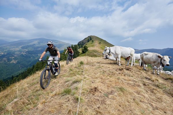 The mountains of Piedmont, what mountains! Today you cycle at high altitude along the ridge that separates the Varaita Valley from the Maira Valley with a view that sweeps over the plain and towards its majesty Monviso, the mountain par excellence here. A lake shines at the bottom of the valley, while French is already being spoken in the background. The trails today are partly smooth and beautiful to ride but also very technical at times, a wild mix! To finish the day, one last uphill ride to reach one of the most iconic paths in the valley: Vaccheroba!